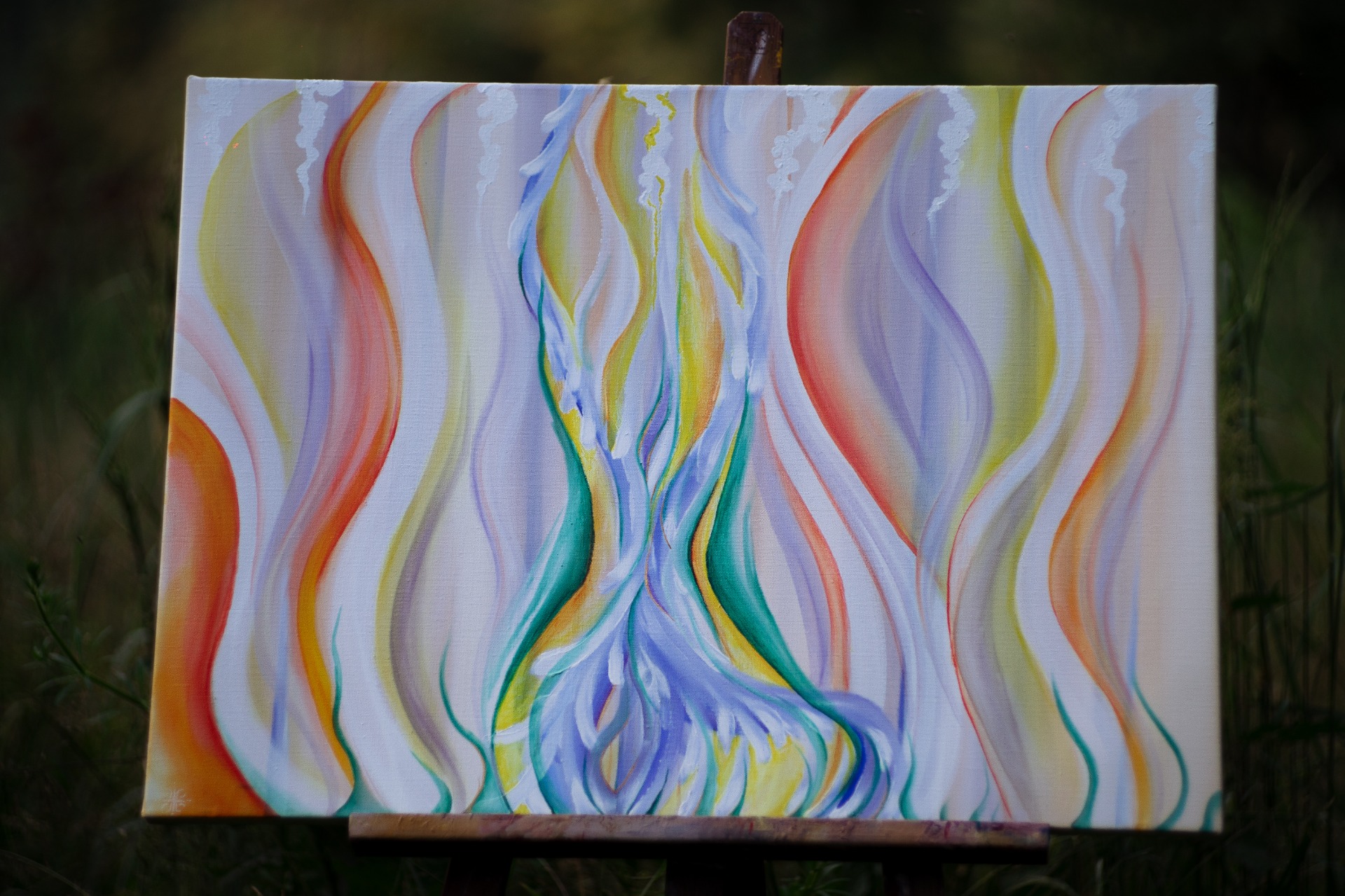 Malovaný v požehnaném stavu s Jas se zprávou pro duši : Vítej DOMA NA ZEMI. Malovaný byl pro ni, ale ne jenom. Už když jsem obraz začínala, věděla jsem, že se z něj budou dělat kopie.